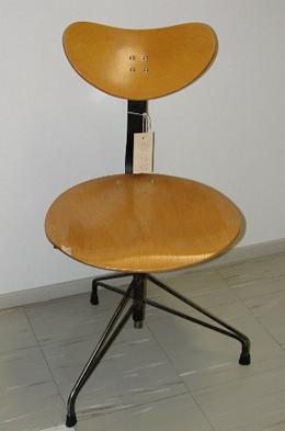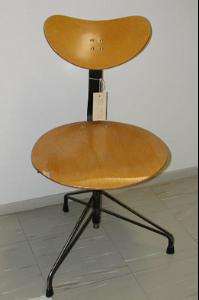 About MuseumFinland![]() | Materiaali: metalli, vaneri Valmistusaika: 1950-1969 Valmistustekniikka: teollinen Mitat: Korkeus:78cm(Säädettävä, alimmillaan), Leveys:51cm(Jaloista mitattuna) Museokokoelma: Museokokoelma Vastuumuseo: Espoon kaupunginmuseo Asiasanasto: Espoon kaupunginmuseon sanasto Esineen numero: ECM:2219:32 ID: 221932 Metallirunkoinen pyrivä toimistotuoli, jonka korkeus ja selkänoja ovat säädettävissä. Metalliosat on maalattu mustaksi. Kolmihaaraisen jalkaosan alaosassa on muovisuojat. Istuinlevy ja selkänoja ovat muotoiltua koivuvaneria. Metallirungon yläosa on nousee ylöspäin aaltomaisesti kiinnittyen selkänojaan. Selkänojan korkeus on säädettävissä metallinupista. Vaneri on lakattu todennäköisimmin selluloosalakalla, joka antaa sille kellertävän sävyn. Esinetyyppi: