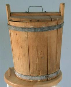 About MuseumFinland![]() | Materiaali: mänty, pelti Valmistaja: Karl Blomberg Valmistuspaikka: Brödtorpgård,Pohja,Suomi Valmistusaika: 1930-1939 Valmistustekniikka: käsityö Käyttäjä: Gunvor Blomberg, Karin Blomberg Käyttöpaikka: Espoo,Suomi,Brödtorpgård,Pohja,Suomi Mitat: Halkaisija:27cm, Halkaisija:27cm(kansi), Korkeus:44,5cm, Korkeus:5cm(kansi) Museokokoelma: Museokokoelma Vastuumuseo: Espoon kaupunginmuseo Asiasanasto: Espoon kaupunginmuseon sanasto Esineen numero: ECM:3245:1 ID: 32451 Pyöreäpohjainen kimpiastia, jota tukee peltiset vanteet ylä- ja alareunasta. Kaksi kimpilaudoista on muita pidemmät, joissa reiät kantamista varten. Pohja valmistettu yhdestä kappaleesta. Kansi on pyöreä ja valmistettu kahdesta levystä, jotka kiinnitetty toisiinsa kahdella naulalla. Lautojen päällä on rima, jossa on pellistä valmistettu kahva. Esinetyyppi: