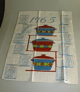 About MuseumFinland![]() | Materiaali: puuvilla Valmistuspaikka: Suomi Valmistusaika: 1964-1965 Asiasana: KALENTERI, KEITTIÖTEKSTIILIT, PAINOKANGAS, VUOSILUKU Mitat: Korkeus:66cm, Leveys:50cm Museokokoelma: Museokokoelma Vastuumuseo: Espoon kaupunginmuseo Asiasanasto: Espoon kaupunginmuseon sanasto Esineen numero: ECM:3550:1 ID: 35501 Paksua valkoista palttinaa. Suorakaition muotoinen pyyhe, johon pystysuunnassa painettu tyyliteltyjä kattiloita, vuosiluku 1965 ja kuukausien kalenterit. Reunat koneommeltu, ripustuslenkki. Värit: sininen, punainen, vihreä. Esinetyyppi: