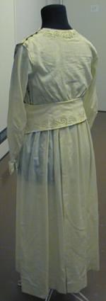About MuseumFinland![]() ![]() | Materiaali: villa Valmistuspaikka: Suomi Valmistusaika: 1910-1925 Valmistustekniikka: käsin ja käsin koneella Käyttäjä: Anna Morelius Asiasana: ERIKOISTEKNIIKAT, HÄÄT Mitat: Pituus:121cm(pituus KE), Pituus:126cm(pituus KT), Pituus:57cm(hihan pituus), Ympärysmitta:218cm(helman) Museokokoelma: Museokokoelma Vastuumuseo: Espoon kaupunginmuseo Asiasanasto: Espoon kaupunginmuseon sanasto Esineen numero: ECM:3594:11 ID: 359411 Pitkähihainen pitkä hame, jossa pyöreä pääntie. Koristeena kapea kankaaseen polveilevasti ommeltu nauha. Koristeet pääntiellä, hihansuissa ja edessä boleromaisessa yläosassa, joka jatkuu taakse vyötnä. Kohottettu vyötärösauma.Yläosa huoliteltu hihattomalla vuoriosalla, jossa pitsisomisteet pääntiellä ja hihansuissa. Esinetyyppi: