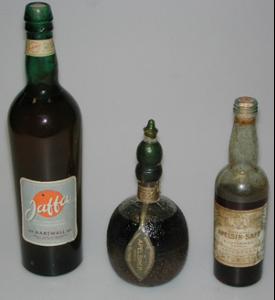 About MuseumFinland![]() | Materiaali: lasi, korkki Valmistaja: Hartwall, Karhulan lasitehdas Valmistuspaikka: Hartwall,Helsinki,Suomi Valmistusaika: 1949-1959 Valmistustekniikka: teollinen Käyttäjä: Gertrud Dickmann Käyttöpaikka: Tuomarila,Espoo,Suomi,Hartwall,Helsinki,Suomi Asiasana: VIRVOITUSJUOMA Museokokoelma: Museokokoelma Vastuumuseo: Espoon kaupunginmuseo Asiasanasto: Espoon kaupunginmuseon sanasto Esineen numero: ECM:3675:9 ID: 36759 Vihreä lasista valmistettu pullo, jossa suorat sivut. Kaula on keskeltä muuta kaulaa paksumpi, mutta kapenee kohti suuta. Suun ulkoreuna on hieman viisto alapäin ja siinä on kaksi litteää kaulusta ennen kaulaa. Pullossa on luonnon korkki. Pullon kylkeen ja kaulaan on liimattu etiketti. Pullo on avaamaton ja sen sisällä on sakkaantunutta nestettä. Esinetyyppi: