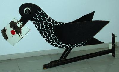 About MuseumFinland![]() | Materiaali: rauta Valmistuspaikka: Suomi Valmistusaika: 1968-1970 Valmistustekniikka: käsityö, koneellisesti Käyttäjä: Heikintori Käyttöpaikka: Suomi,Heikintori,Tapiola,Espoo,Suomi Asiasana: KAUPPA, LINNUT, MAINOS Mitat: Korkeus:57cm, Leveys:101cm Museokokoelma: Museokokoelma Vastuumuseo: Espoon kaupunginmuseo Asiasanasto: Espoon kaupunginmuseon sanasto Esineen numero: ECM:3680:6 ID: 36806 mustaksi maalattu seinään kiinnitettävä rautatanko, jonka yläreunaan on kiinnitetty musta pellistä valmistettu lintu. Linnulla on valkoinen kirje suussaan, jossa punainen sinetti. Linnulla on pallomaiset silmät, siivet pystyssä ja sille on maalattu valkoisella sulkien ääriviivoja. Esinetyyppi: