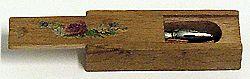 About MuseumFinland![]() | Materiaali: jalopuu Valmistaja: C. Brandauer and Co, D. Leonardt and Co, Perry and Co, Suomen Teräskynätehdas Oy Valmistusaika: 1900 n. Valmistustekniikka: tehdasvalmisteinen Käyttäjä: Olga Dahlberg Käyttöpaikka: Uusikaupunki, Turun ja Porin lääni, Varsinais-Suomi, Suomi Asiasana: KIRJOITUSVÄLINEET, SÄILYTYS Mitat: kotelon: pituus 7,0cm, leveys 2,5cm, korkeus 1,5cm, kynänterien: pituus 35-42mm Museokokoelma: LAHDEN HISTORIALLINEN MUSEO Vastuumuseo: LAHDEN KAUPUNGINMUSEO Asiasanasto: Lahden kaupunginmuseon sanasto Esineen numero: LKM:LHM:LHM:ES:2000036:13 ID: 200003613 Suorakaiteen muotoinen, irtivedettävällä kannella varustettu teräkotelo. Sisällä soikion muotoinen syvennys teriä varten. Kannessa kukka-aiheinen siirtokuva. Sisällä 7 kpl metallisia mustekynän teriä. Esinetyyppi: