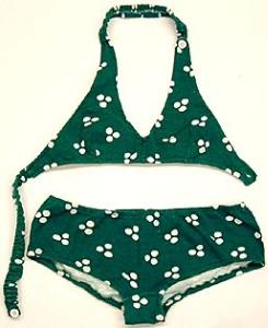 About MuseumFinland![]() | Materiaali: puuvillatrikoo, puuvillapalttina Valmistaja: Marimekko Oy Valmistuspaikka: Helsinki, Uuudenmaan lääni, Uusimaa, Suomi Valmistusaika: 1970 Käyttäjä: Eija Harjula Käyttöpaikka: Suomi Asiasana: UIMINEN Mitat: koko M, yläosa: rinnan ympärys 64cm, alaosa: vyötärön ympärys 70cm, korkeus 11,5cm Museokokoelma: LAHDEN HISTORIALLINEN MUSEO Vastuumuseo: LAHDEN KAUPUNGINMUSEO Asiasanasto: Lahden kaupunginmuseon sanasto Esineen numero: LKM:LHM:LHM:ES:2002078 ID: 2002078 Niukahko, hieman muotoiltu yläosa, jossa palttina vuori. Niskan takaa kulkeva napilla kiinnitettävä nauha, johon on pujotettu kaksi kuminauhaa sisälle. Samanlainen nauha takana, kiinnitys napilla vasemmalla. Lahkeeton alaosa navan alapuolelle. Vyötäröllä kuminauhakuja ja haarakiilassa palttinavuori. Esinetyyppi: