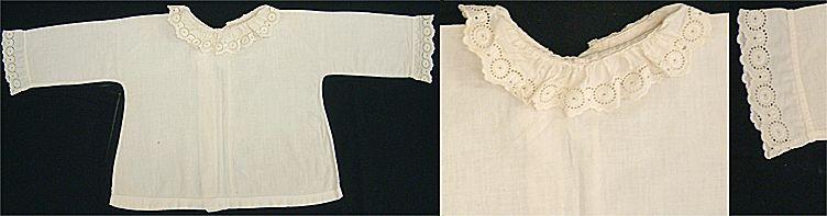 About MuseumFinland![]() | Materiaali: puuvillapalttina, brodyyrinauha Valmistaja: Elli Hahl Valmistuspaikka: Jaala, Kymen lääni, Kymenlaakso, Suomi Valmistusaika: 1933 Valmistustekniikka: käsityö Käyttäjä: Maija Hahl Käyttöpaikka: Jaala, Kymen lääni, Kymenlaakso, Suomi Asiasana: VAUVAN VAATTEET Mitat: pituus 28,5cm Museokokoelma: LAHDEN HISTORIALLINEN MUSEO Vastuumuseo: LAHDEN KAUPUNGINMUSEO Asiasanasto: Lahden kaupunginmuseon sanasto Esineen numero: LKM:LHM:LHM:ES:72045:16 ID: 7204516 T-mallisesti leikattu vauvan pitkähihainen röyhelökauluspaita, jossa saumat sivuissa. Takaa avoin, pääntie pyöreä, yläreunassa solmiamisnauhat. Alareunassa käänne. Esinetyyppi:
