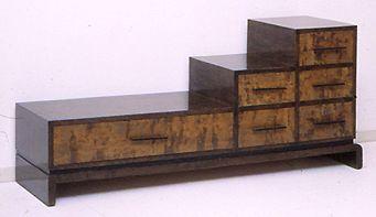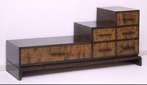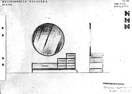About MuseumFinland![]() ![]() ![]() ![]() | Materiaali: koivu; loimukoivu, metalli Valmistaja: Huonekaluliike Mikko Nupponen, Erkki Nupponen Valmistuspaikka: Lahti, Hämeen lääni, Päijät-Häme, Suomi Valmistusaika: 1934 Valmistustekniikka: tehdasvalmisteinen Käyttäjä: Lahden Messut Oy, Anna-Liisa Uotila Käyttöpaikka: Lahti, Hämeen lääni, Päijät-Häme, Suomi Asiasana: HUONEKALUT, MAKUUHUONEEN KALUSTO, PEILIPÖYDÄT, PÖYDÄT Mitat: uloin: korkeus 62cm, leveys 137,5cm Museokokoelma: LAHDEN HISTORIALLINEN MUSEO Vastuumuseo: LAHDEN KAUPUNGINMUSEO Asiasanasto: Lahden kaupunginmuseon sanasto Esineen numero: LKM:LHM:LHM:ES:86047:1 ID: 860471 Yleismuodoltaan suoraviivainen, matala ja pitkä. Kohoaa toiseen päähän portaittaisesti. Korkeimmassa osassa kolme alekkaista vetolaatikkoa, keskimmäisessä osassa kaksi ja matalassa päässä yksi leveä vetolaatikko. Jokaisessa laatikossa pitkulainen vedin (metalli ja mustaksi maalattu puu). Sarjan toinen pää kaareutuu lyhyeksi jalkaosaksi. Toisen pään jalka suorakulmainen. Esinetyyppi: