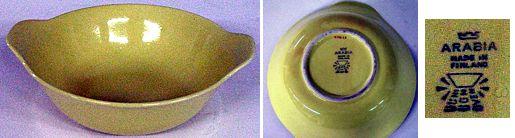 About MuseumFinland![]() | Materiaali: fajanssi (kovafajanssi), lasite Valmistaja: Arabia Valmistuspaikka: Helsinki, Uudenmaan lääni, Uusimaa, Suomi Valmistusaika: 1964 jälk.-1971 ennen Valmistustekniikka: tehdasvalmisteinen Käyttäjä: Tyyne Merikannel Käyttöpaikka: Lahti, Hämeen lääni, Päijät-Häme, Suomi Asiasana: ASTIAT, RUOANLAITTO, RUOANVALMISTUSVÄLINEET, TARJOILU Mitat: suun: halkaisija 17,0cm, jalkarenkaan: halkaisija 7,5cm, korkeus 6,0cm Museokokoelma: LAHDEN HISTORIALLINEN MUSEO Vastuumuseo: LAHDEN KAUPUNGINMUSEO Asiasanasto: Lahden kaupunginmuseon sanasto Esineen numero: LKM:LHM:LHM:ES:91046:28 ID: 9104628 Kokonaan keltainen kulho. Muodoltaan pyöreä. Matala lasittamaton jalkarengas. Alhaalta kaartuen ylös kohoavat sivut. Suu hieman uloskaartuva. Kädensijoina kulhon päässä kaksi pyöristettyä ulkonemaa. Esinetyyppi: