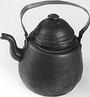About MuseumFinland![]() | Materiaali: kahvipannu: kupari, tina, rottinki, kahvipannu: kupari Valmistaja: Peltiteos Oy Valmistuspaikka: Helsinki, Uudenmaan lääni, Uusimaa, Suomi Valmistusaika: 1920-l.lp?-1930 luku? Valmistustekniikka: kahvipannu: tehdasvalmisteinen, kahvipannu: tehdasvalmisteinen Käyttäjä: Viipurin linja-autoasema, Elias Kari, Elle Kari, Terttu Kirvesniemi Käyttöpaikka: Viipuri, Viipurin lääni, Karjala, Suomi Asiasana: KAHVI, RAVINTOLA, TARJOILU Mitat: kannen kanssa: korkeus 15cm, ympärysmitta 36cm, kädensija: leveys 1,5cm, vetoisuus 0,75l Museokokoelma: LAHDEN HISTORIALLINEN MUSEO Vastuumuseo: LAHDEN KAUPUNGINMUSEO Asiasanasto: Lahden kaupunginmuseon sanasto Esineen numero: LKM:LHM:LHM:ES:95055:82 ID: 9505582 Kahvipannu: pienehkö (kahdenkupin pannu?). Sisäpuolella hyvä tinaus. Kädensijan ympärillä rottinkia. Alaspäin levenevä, pyöreä kylkinen pannu. Kädensija kiinnitetty niittaamalla, kiinnityslevy sydämmenmuotoinen. Kannessa lyhyt suorareuna, profiloituen ylöspäin pyöristyvä, pyöreä nuppinen. Kahvipannu tarkoitettu todennäköisesti kahviannos pannuksi. Keskeltä kylkeä lähtevä, ylöspäin kaartuen kohoava nokka. Kahvipannu: pieni, kahden? kupin pannu. Pyöreäkylkinen, alaspäin levenevä. Kädensija kiinnitetty niittaamalla, kiinnityslevy sydämen muotoinen. Keskeltä kylkeä lähtevä, ylöspäin kaartuen kohoava nokka. Kannessa lyhyt alaspäin suora reuna, profiloituen ylöspäin pyöristyvä, pyöreä nuppi. Esinetyyppi:
