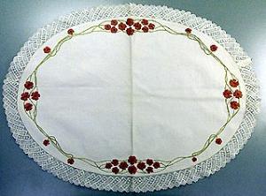 About MuseumFinland![]() | Materiaali: puuvillapalttina, puuvillalanka, tehdasvalm. pitsi Valmistaja: Martta Palin Valmistuspaikka: Lahti, Hämeen lääni, Päijät-Häme, Suomi Valmistusaika: 1920-l.n. Valmistustekniikka: käsityö Käyttäjä: Martta Palin Käyttöpaikka: Lahti, Hämeen lääni, Päijät-Häme, Suomi Asiasana: KIRJONTA, KODINTEKSTIILIT, TARJOILU Mitat: pituus 68cm, leveys 49,5cm, pitsi: leveys 4cm Museokokoelma: LAHDEN HISTORIALLINEN MUSEO Vastuumuseo: LAHDEN KAUPUNGINMUSEO Asiasanasto: Lahden kaupunginmuseon sanasto Esineen numero: LKM:LHM:LHM:ES:95120:28 ID: 9512028 Soikea tarjotinliina, jonka reunaan on kahdella koneompeleella kiinnitetty tehdasvalmisteinen nyplättyä pitsiä jäljittelevä pitsi. Esinetyyppi: