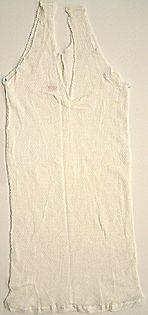About MuseumFinland![]() | Materiaali: silkkisekoite? Valmistaja: Tam-Silk Oy Valmistuspaikka: Tampere, Hämeen lääni, Pirkanmaa, Suomi Valmistusaika: 1970-luku Valmistustekniikka: tehdasvalmisteinen Käyttäjä: Aili Mäki-Moijala Käyttöpaikka: Lahti, Hämeen lääni, Päijät-Häme, Suomi Asiasana: NAISEN ALUSVAATTEET Mitat: koko 42, pituus 74cm, rinnan ympärys 64cm Museokokoelma: LAHDEN HISTORIALLINEN MUSEO Vastuumuseo: LAHDEN KAUPUNGINMUSEO Asiasanasto: Lahden kaupunginmuseon sanasto Esineen numero: LKM:LHM:LHM:ES:97070:356 ID: 97070356 Yksimittainen, sivusaumaton olkainaluspaita, jossa saumat olkapäillä. Kädenaukot ja pääntie muotoonleikattu, reunassa pieni pitsi. Edessä ylhäällä pieni poikittainen poimutelma. Esinetyyppi: