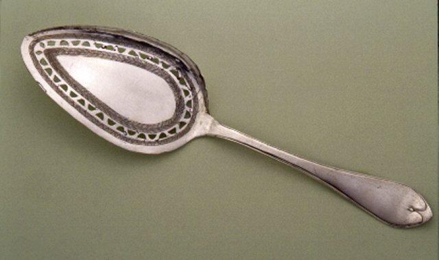 About MuseumFinland![]() | Materiaali: metalli;hopea Valmistaja: Anders nuor. Törnqvist Valmistusaika: 1817 Asiasana: ottimet, ruokailuvälineet Mitat: leveys:7,4cm, pituus:13cm, pituus:28,5cm Museokokoelma: Historialliset kokoelmat Vastuumuseo: Suomen kansallismuseo Asiasanasto: Museoalan asiasanasto Esineen numero: NBA:H31005:2 ID: 15137 Varsi päähän päin levenevä, pää suippo, ylöspäin taivutettu, varren reunaa kiertää kapea kohoraita. Lapa tasainen, kärkeen päin suippeneva, toisella sivulla korkea reunus. Lavan reunaa kiertää leveä, osittain kaiverrettu, osittain lävistetty geometrinen koristenauha. Esinetyyppi: