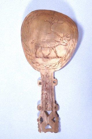 About MuseumFinland![]() | Materiaali: sarveisaine;poro Valmistustekniikka: käsityö Asiasana: lusikat, matkamuistot, ruokailuvälineet, saamelaiset, sarvilusikat, suomalais-ugrilaiset kansat, taloustarvikkeet Museokokoelma: Suomalais-ugrilaiset kokoelmat Vastuumuseo: Suomen kansallismuseo Asiasanasto: Museoalan asiasanasto Esineen numero: NBA:SU4940 ID: 75277 Poron sarvesta matkailijoille myytäväksi valmistettu, mm. kaiverretulla poron kuvalla koristeltu lusikka. Tällaisia lusikoita valmistavat Ruotsin ja Norjan saamelaiset myydäkseen niitä matkailijoille. Esinetyyppi: