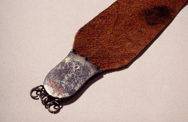 About MuseumFinland![]() ![]() ![]() | Materiaali: kangas, metalli;hopea, nahka Valmistustekniikka: käsityö Asiasana: asusteet, helavyöt, porolappalaiset, pukineet, saamelaiset, suomalais-ugrilaiset kansat, vyöt Museokokoelma: Suomalais-ugrilaiset kokoelmat Vastuumuseo: Suomen kansallismuseo Asiasanasto: Museoalan asiasanasto Esineen numero: NBA:SU5018:2 ID: 3116 Vaalealle nahkaremmille kiinnitetyn punaverkaisen kaistaleen päällä 16 kahta eri kokoa olevaa hopeanväristä neliömäistä metallilaattaa eli lappaa. Solki koristettu kahdella enkelinpäällä. Esinetyyppi: