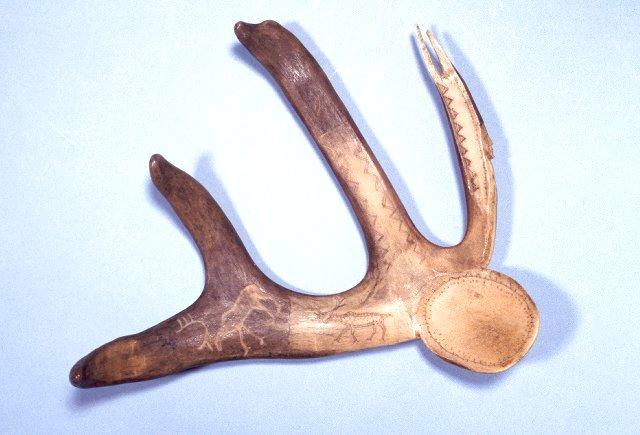 About MuseumFinland![]() | Materiaali: sarvi Valmistustekniikka: käsityö Asiasana: haarukat, lusikat, ruokailuvälineet, sarvilusikat, taloustarvikkeet Museokokoelma: Suomalais-ugrilaiset kokoelmat Vastuumuseo: Suomen kansallismuseo Asiasanasto: Museoalan asiasanasto Esineen numero: NBA:SU5297:96 ID: 34660 Lusikka- ja haarukkayhdistelmä, nelihaarainen kappale, jonka tyvi on lusikantapainen ja haaroista yksi tehty kaksipiikkiseksi. Koristeina mm. kaksi poron kuvaa ja haarukanvarressa ihmisprofiili. -Esineellä ei liene mitään käytännöllistä merkitystä, vaan se on pelkkä kuriositeetti. Mahdollisesti suomalainen. Esinetyyppi: