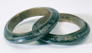 About MuseumFinland![]() | Materiaali: metalli;messinki, puu Valmistuspaikka: Wad Nun (Oued Noun) Valmistustekniikka: käsityö Asiasana: korut, puutyöt, rannerenkaat, Pohjois-Afrikka, islamilainen kulttuuri Mitat: halkaisija:8,3cm, korkeus:1,6cm Museokokoelma: Yleisetnografiset kokoelmat Vastuumuseo: Kulttuurien museo Asiasanasto: Museoalan asiasanasto, Yleinen suomalainen asiasanasto Esineen numero: NBA:VK4835:42b ID: 72907 Rannerengas (berb. azebg, mon. izekgar), joka on valmistettu tummasta puusta. Koru on koristettu messinkilankaupotuksin, jotka muodostavat aaltolinjoja ja ympyrä/silmukkakuvioita. Pinta on lakattu, ja sisäpuoli on päällystetty messingillä. Esine on käyttämätön. A.O.L. nro 131a Esinetyyppi: