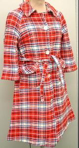 ![]() | Materiaali: puuvilla (vohveli) Valmistaja: Mattisen Teollisuus Oy Valmistuspaikka: Heinola, Mikkelin lääni, Häme, Suomi Valmistusaika: 1970-luku? Valmistustekniikka: tehdasvalmisteinen, vuoriton Käyttäjä: Maija Hahl Käyttöpaikka: Lahti, Hämeen lääni, Päijät-Häme, Suomi Asiasana: NAISEN KOTIASUT, PESEYTYMINEN Mitat: pituus 93cm, rinnan ympärys 86cm, koko 40 Museokokoelma: LAHDEN HISTORIALLINEN MUSEO Vastuumuseo: LAHDEN KAUPUNGINMUSEO Asiasanasto: Lahden kaupunginmuseon sanasto Esineen numero: LKM:LHM:LHM:ES:85029:67 ID: 8502967 Vyötärösaumaton, polven alapuolelle ulottuva, helmaan päin hieman levenevä vohvelikankainen kylpytakki. Puolipitkät raglahihat. Takaa hieman kohoava teräväkulmainen laakakaulus. Molemmin puolin paikkataskut, joiden suut käännetyt oikealla koristeeksi. Irrallinen vyö samasta kankaasta. Esinetyyppi: